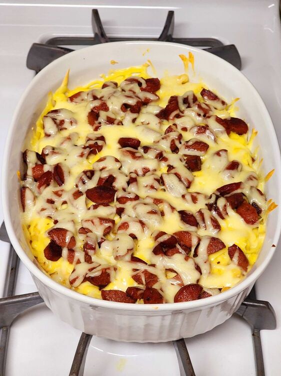 Tonight was a comfort food carb night. First was an all-beef hotdog in homemade Mac n Cheese with a mixture of chedder, Havarti and Smoked Gouda. Homemade Scalloped Potatoes. Golden Potatoes, peeled and then mandolin sliced for consistency. Then Sugar Sweet Spanish onions sauteed in cream. Then a laying process of potatoes, onion cream mixture and Havarti cheese. Multiple layers till full and then baked in the oven.