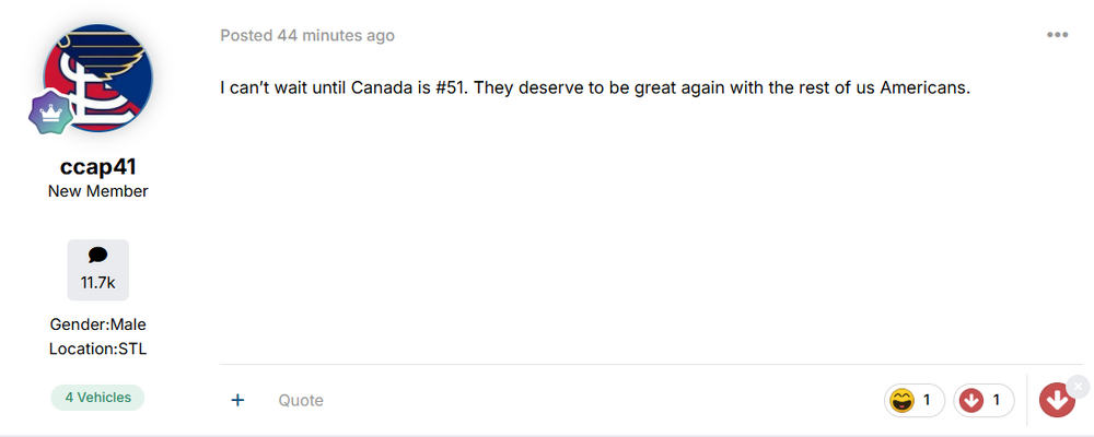 No taxation without representation is what. Lutnick Licknut said of the US/Canada talks a couple of days ago that US first, Canada second for the automotive sector. Normally Id have to agree with him in regards for him as an American to protect the US economy. You cannot blame an American economist vying to protect his country's economic interests. Problem is... ...in the North American automotive industry ( USA/Canada relationship), building and selling cars for the benefit Americans first is kinda deeper than that. I mean, forget about the close to 100 years of Detroit having factories in Canada and Canadians building the vehicles for Americans. And forget about Canadian factories building American cars for Canadians. Forget also that...Ford (and Mercury), Chryco, (mostly Dodge) and General Motors (mostly Pontiac) had EXCLUSIVE Canadian specific models that Canadians built in Canadian factories for Canadians BECAUSE of US/Canada treaties... Yeah...forget that legality once upon a time ago to which those Canadian specific models also helped the US economy GREATLY in many ways... Forget about all that 100 year history and economical ties. There is a deeper more complex reality that involves Canadian iron ore, steel, aluminium... There is a sad song about a ship that sank in the Great Lakes if anybody cares to listen to it But I digress... Anyway...ships like the Tadoussac and the Niagara hauled Canadian iron ore from Quebec mostly...CHEAP, VERY CHEAP, VERY VERY VERY...VERY CHEAP CANADIAN IRON ORE to Detroit for Detroit to build these gas guzzling beasts where Detroit became the RICHEST city in the United States of America once upon a time ago. Trump said in this meeting hat there will be a satisfactory deal with Canada that Canadians will once again travel to... You know... Phoque Lutnick Licknut!!!! Phoque Trump!!! Phoque the US!!! -