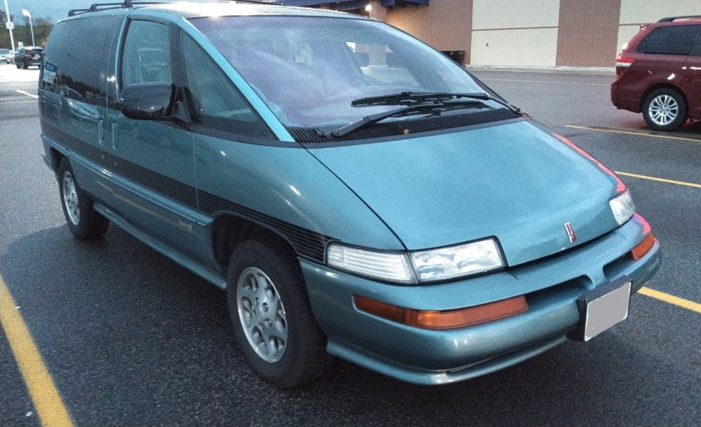 I don't see many of these anymore. Most are in the car graveyard in the sky somewhere. Or, hopefully, recycled. This is an Olds Silhouette minivan from GM's first whack at minivans ... the ones with the long snout. In reviews I've read of these, it said driving one seemed like you were driving them from the back seat! I'm guessing early '90s. It's in incredible condition - the body, the hardware, an original paint color, and it's badged to have a 3800, probably a Series I. No wonder it has been around for so long. Of the GM minivans, I'd give the nod to the Olds Silhouette, followed by the Pontiac Trans Sport, and then the Chevy Venture/Lumina.