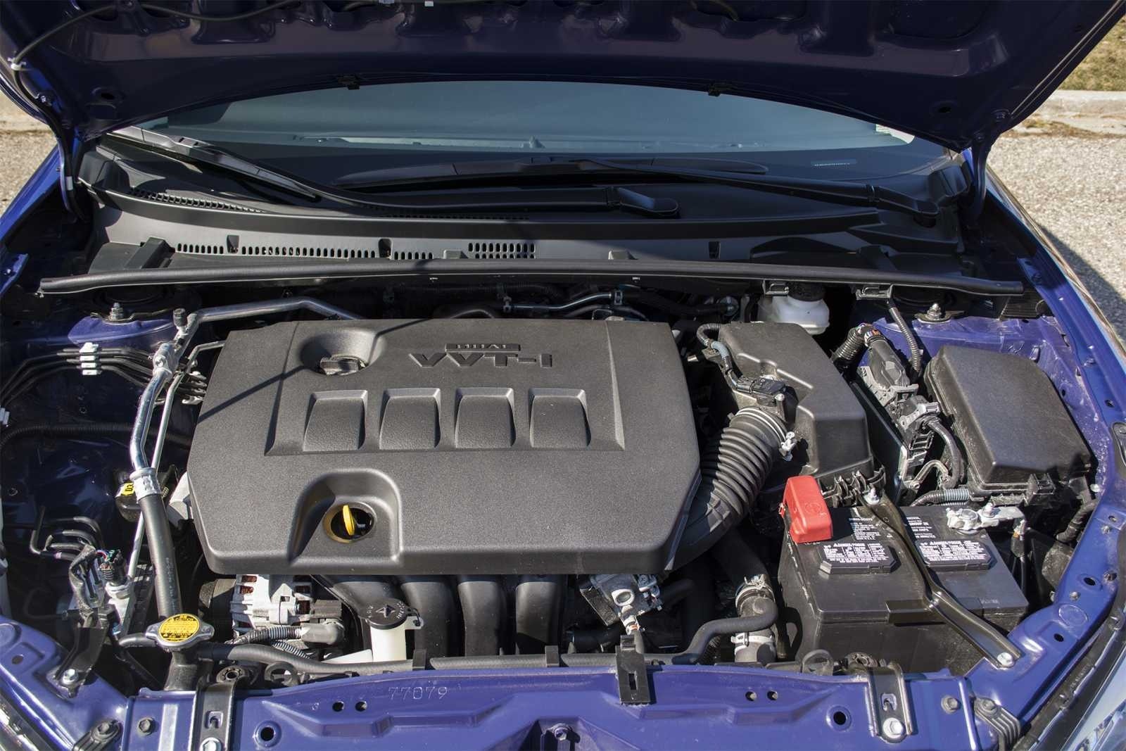 The 2014 Toyota Corolla S is powered by a 1.8-liter four-cylinder engine with Dual VVT-i variable valve timing, producing 132 horsepower. The tidy engine bay reflects Toyota's emphasis on reliability and low maintenance for the all-new E170 generation Corolla.