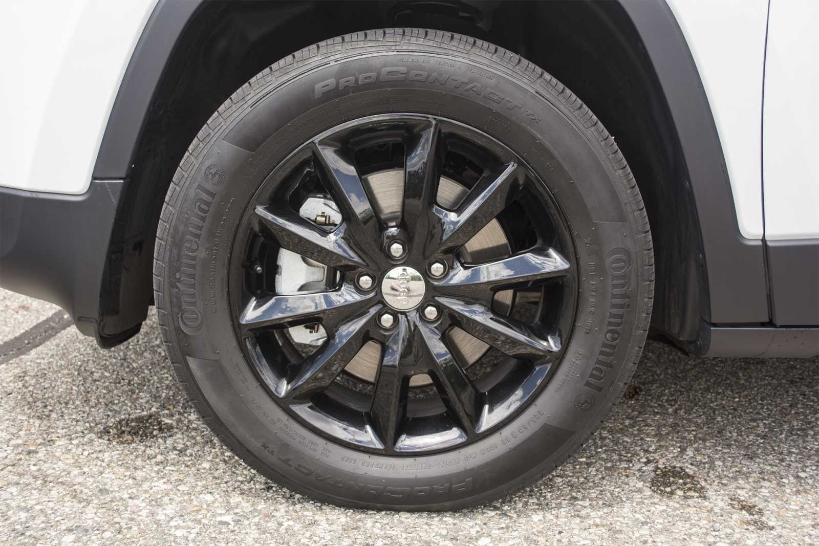 The Altitude package rides on gloss-black 18-inch alloy wheels shod with Continental ProContact tires, one of the most visually striking elements of the appearance upgrade. The dark finish is a stark counterpoint to the white bodywork above the black lower cladding.