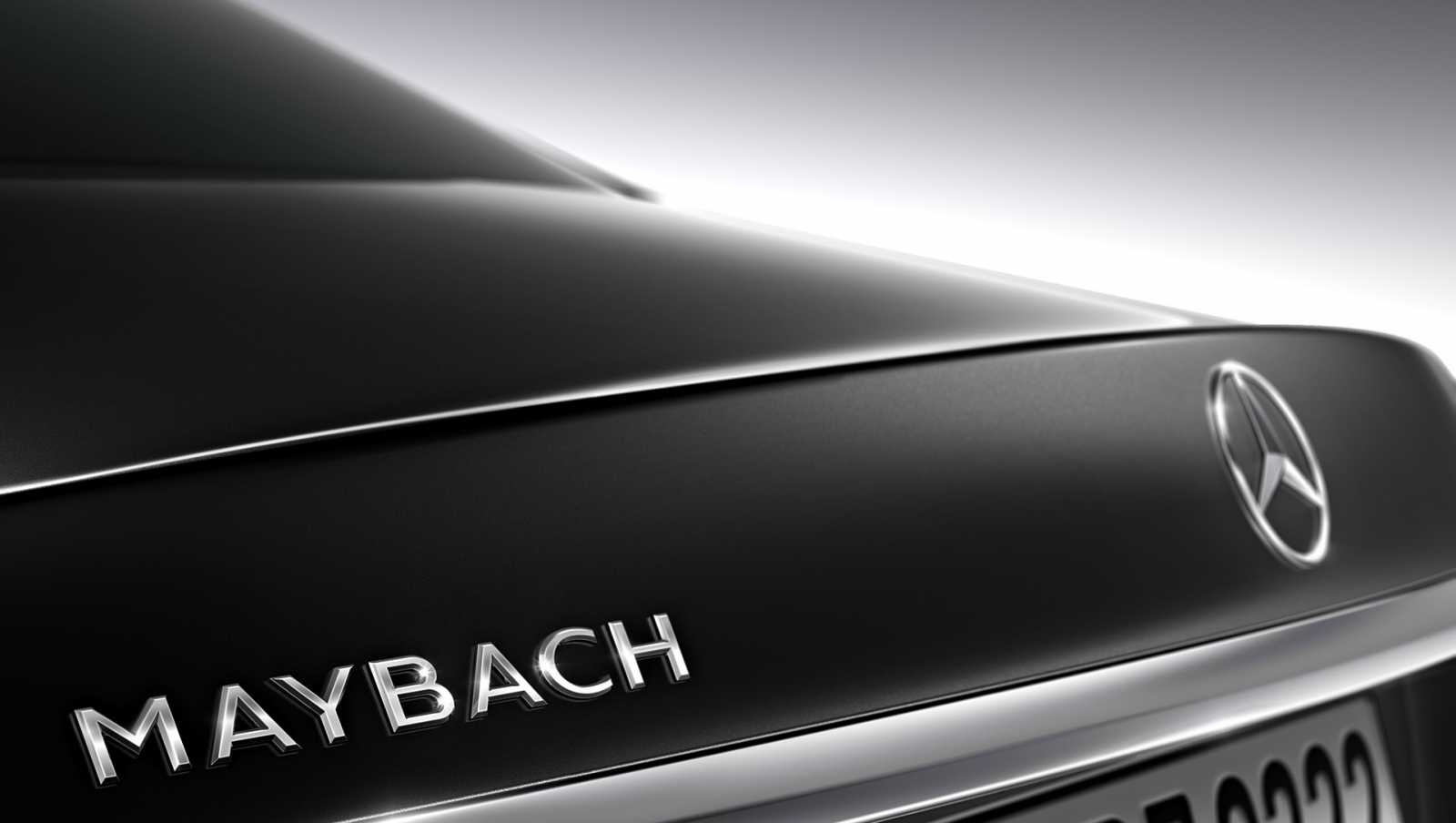 Chrome "MAYBACH" lettering and a three-pointed Mercedes-Benz star share the glossy black decklid of the S600, a pairing that signals the revival of the Maybach sub-brand under the Stuttgart umbrella. The tight, dramatic crop keeps the focus squarely on the badging that separates this long-wheelbase S-Class from every other luxury sedan on the road.