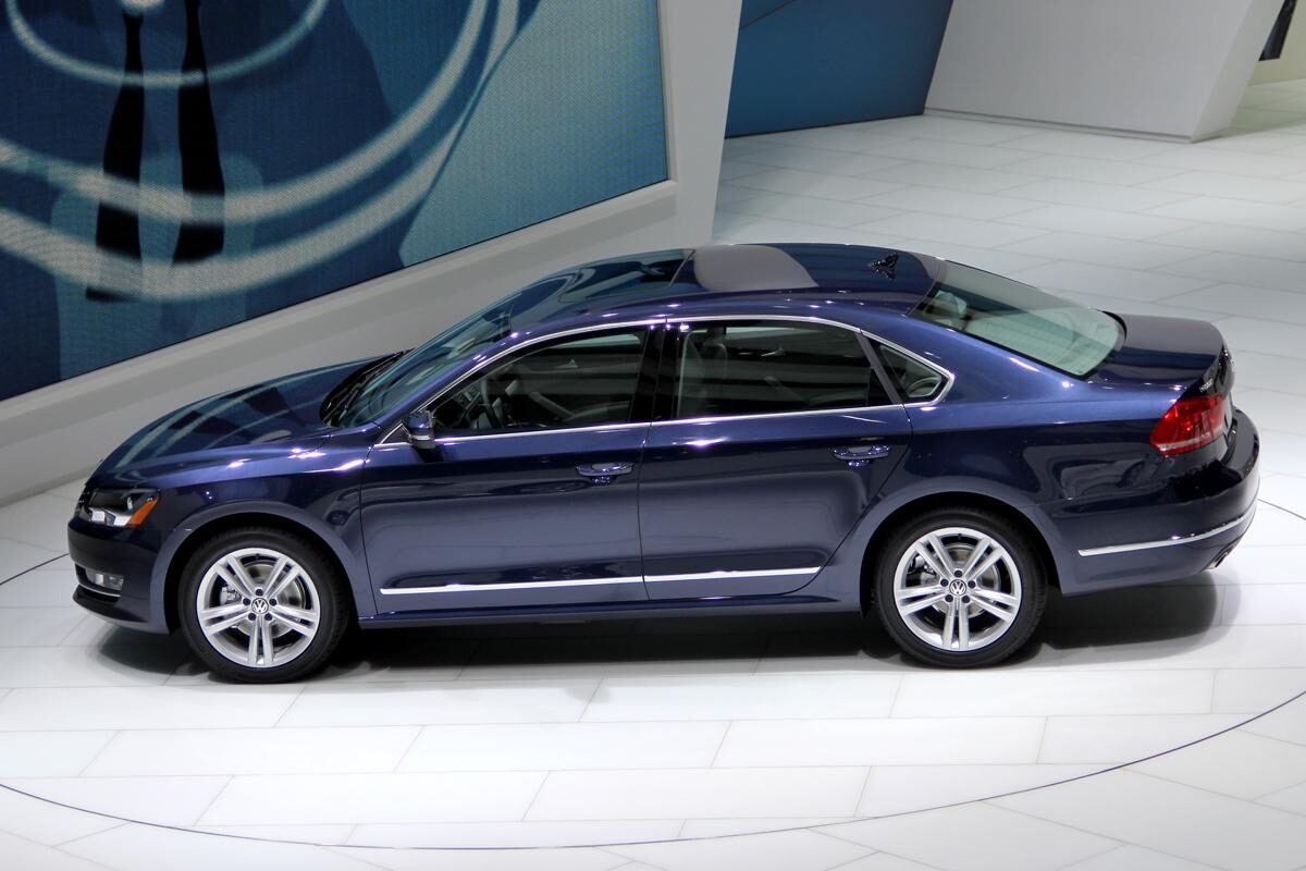 2012 Volkswagen Passat passenger side profile dark blue auto show
