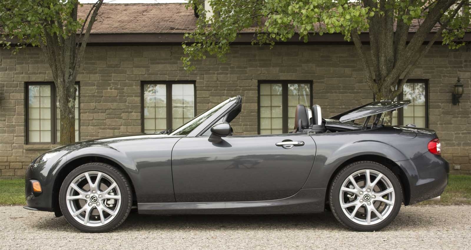 2014 Mazda MX-5 Miata Grand Touring side profile, hardtop partially open