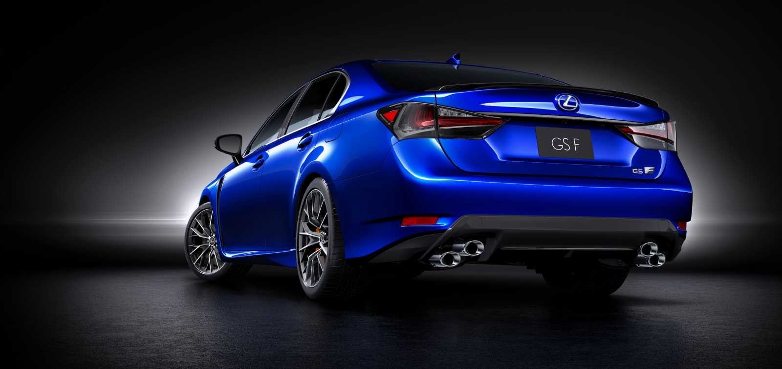 2016 Lexus GS-F Ultrasonic Blue Rear 3/4 Dark Studio Quad Exhaust