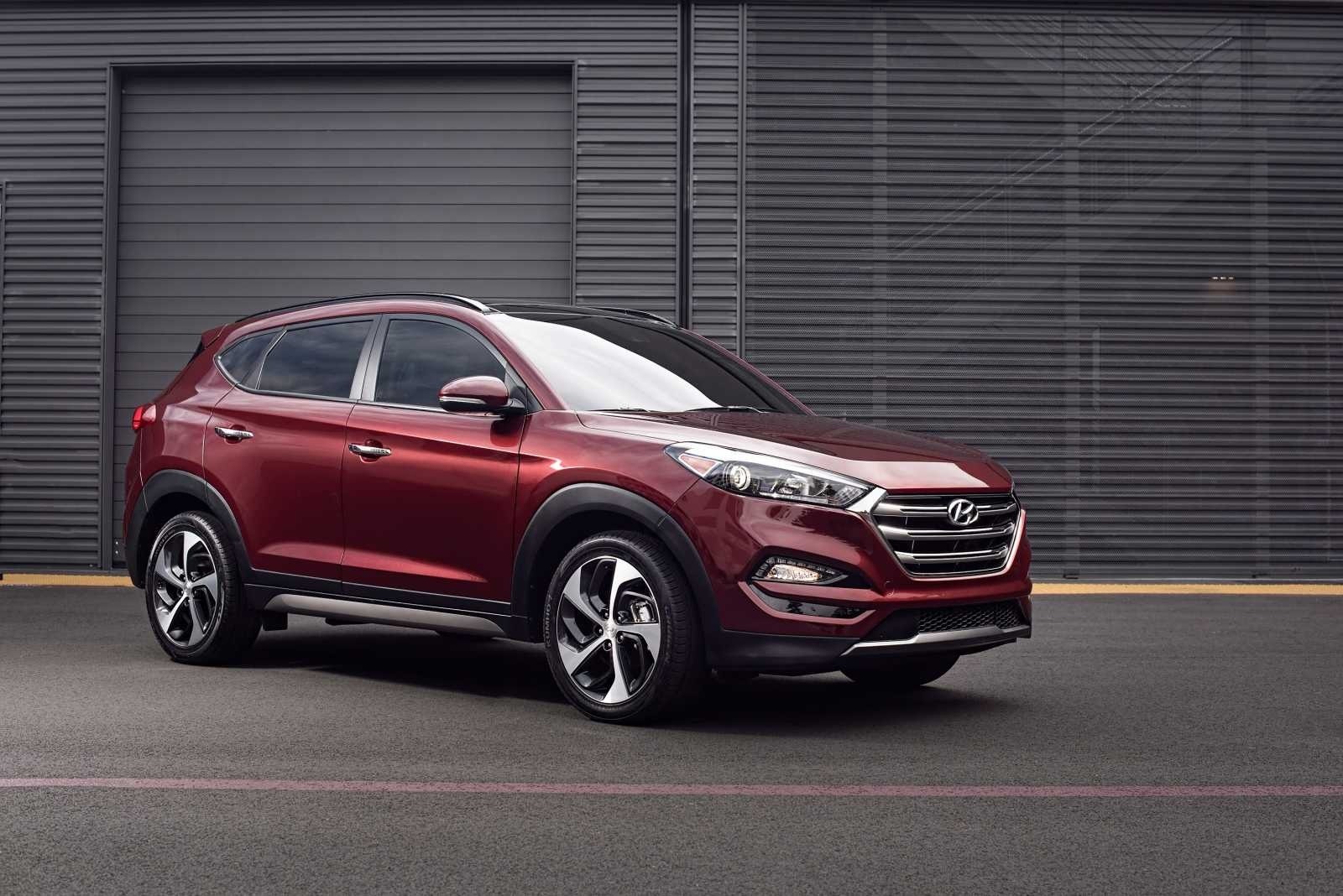 2016 Hyundai Tucson Base rear three-quarter view in front of garage doors