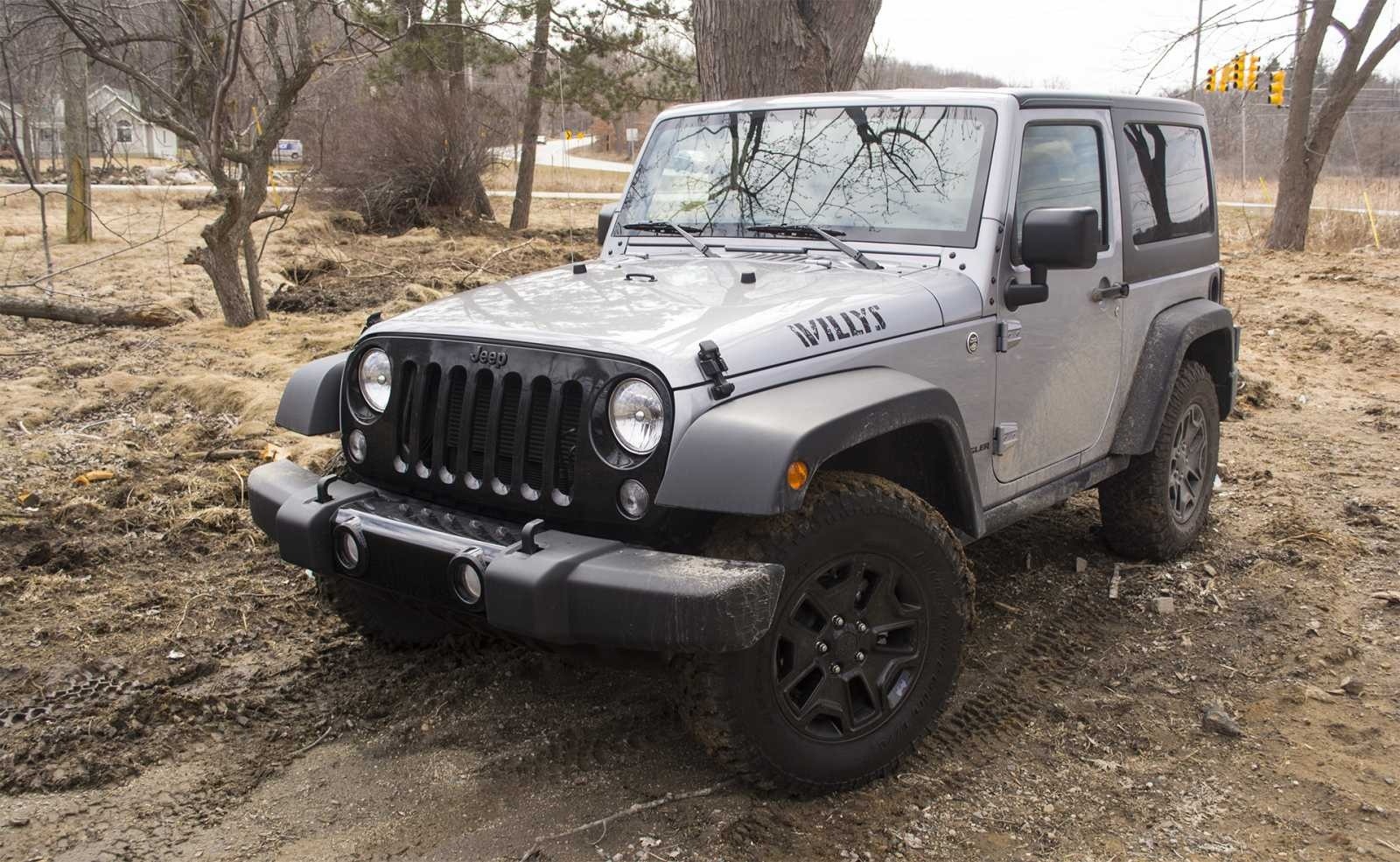2015 Jeep Wrangler Willys Wheeler front three-quarter off-road in mud