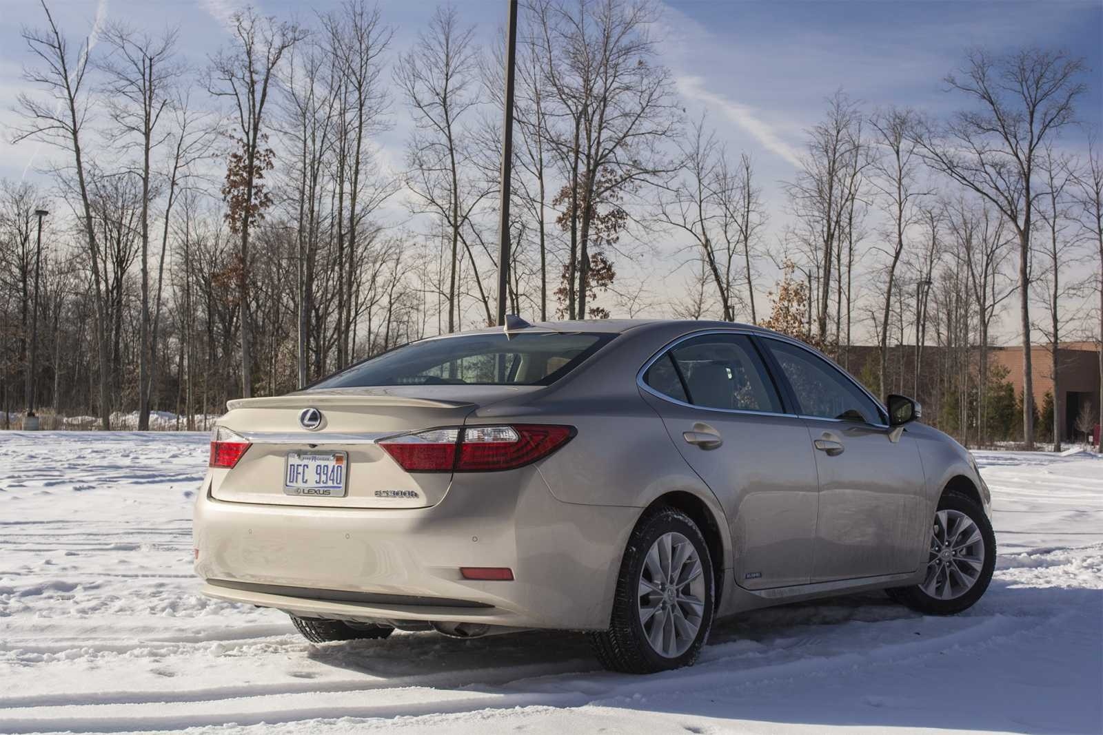 2015 Lexus ES 300h Rear Three-Quarter View in Snow
