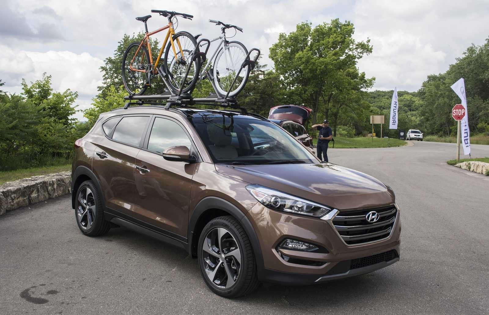 2016 Hyundai Tucson Limited with bicycle roof rack at press event