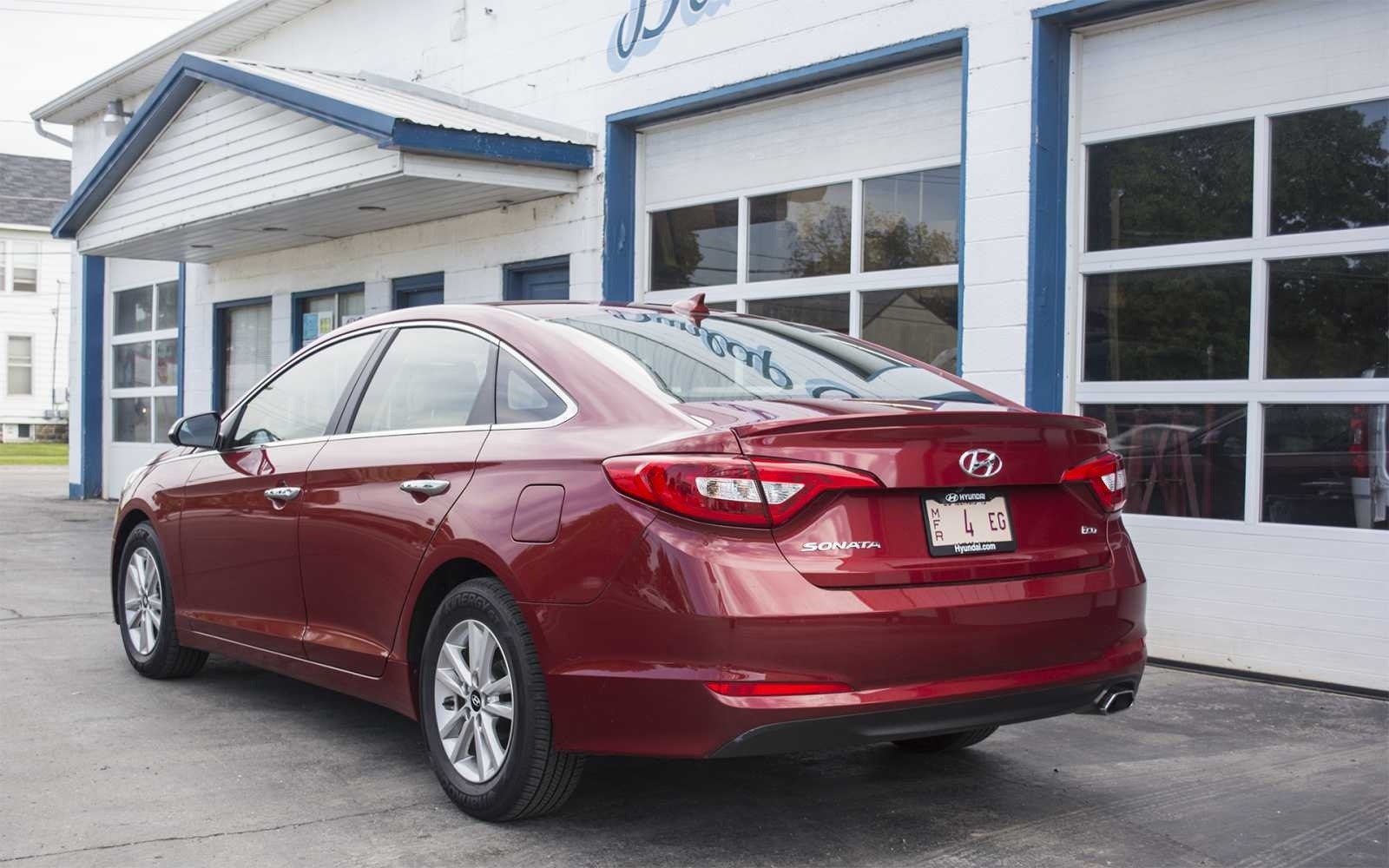 2015 Hyundai Sonata Eco rear three-quarter view in red