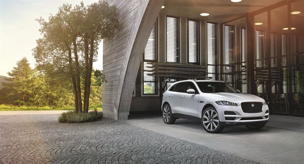 2017 Jaguar F-Pace Exterior Front Three-Quarter Parked Modern Architecture White