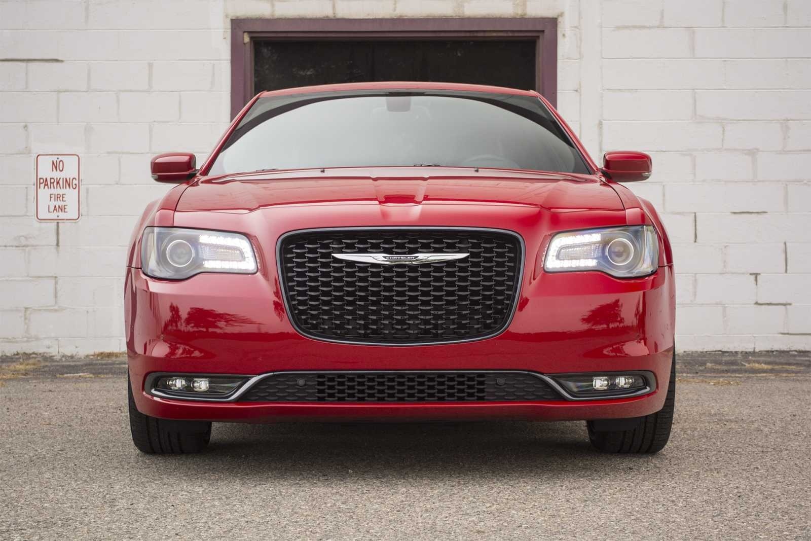 Viewed head-on, the 2015 Chrysler 300S presents its signature large black mesh grille topped with the Chrysler winged badge, flanked by projector headlights with angular LED daytime running light signatures. It's a front end that commands respect before a single wheel turns.