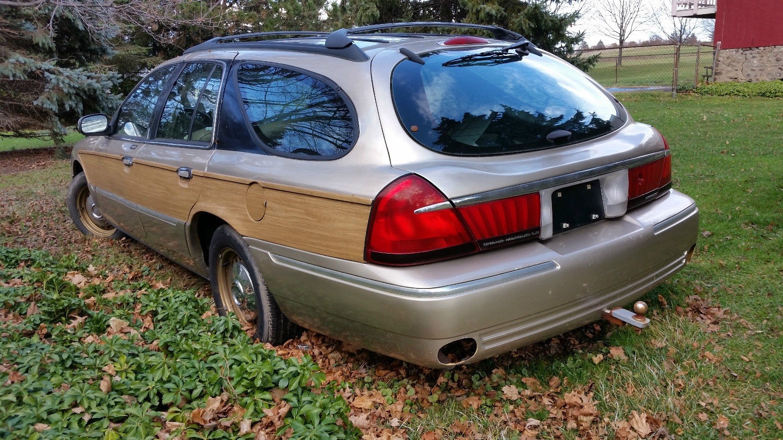 1999 Mercury Grand Marquis Wagon Rear Three-Quarter View with Tow Hitch