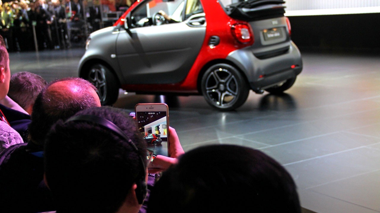Here, we see a member of the press being captured whilst shooting the Smart Fortwo with his iPhone.