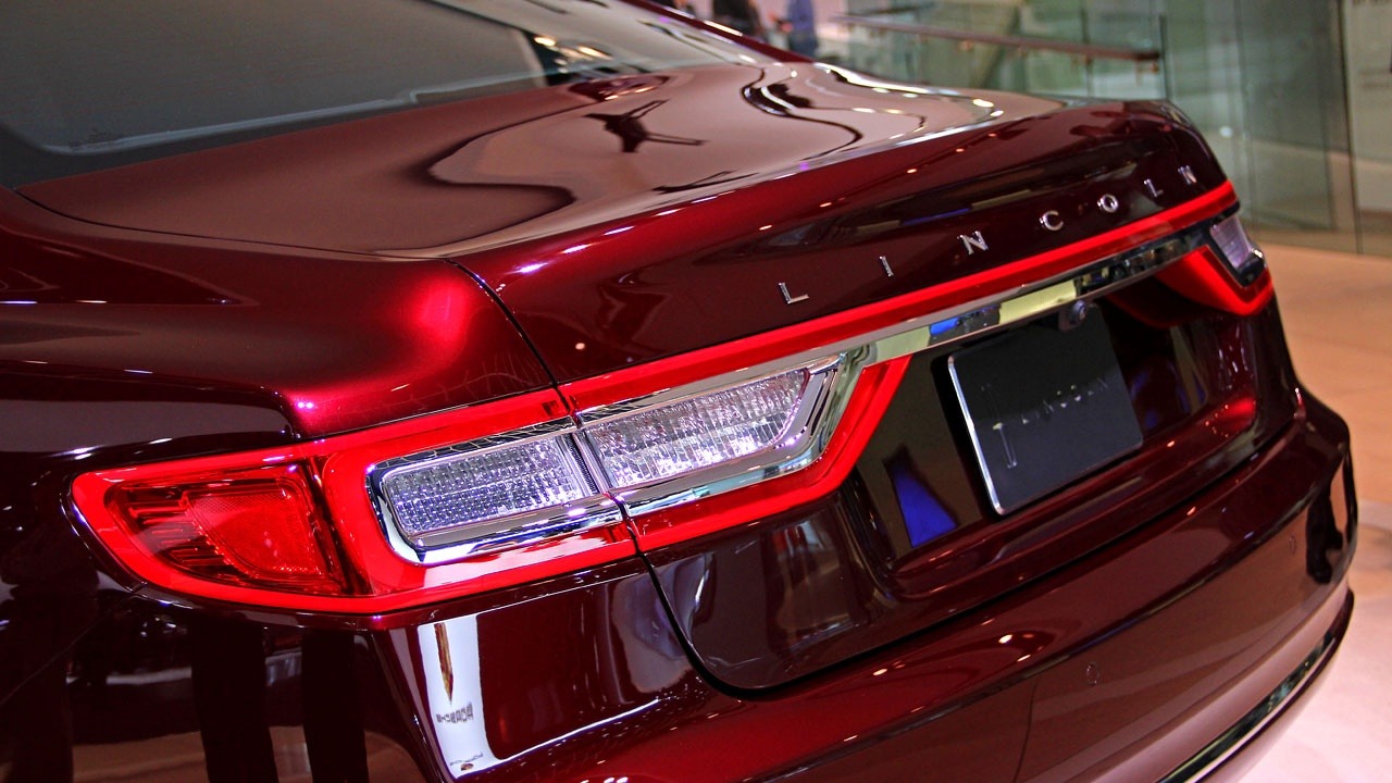 A look at Lincoln's Continental and its full-width taillights.