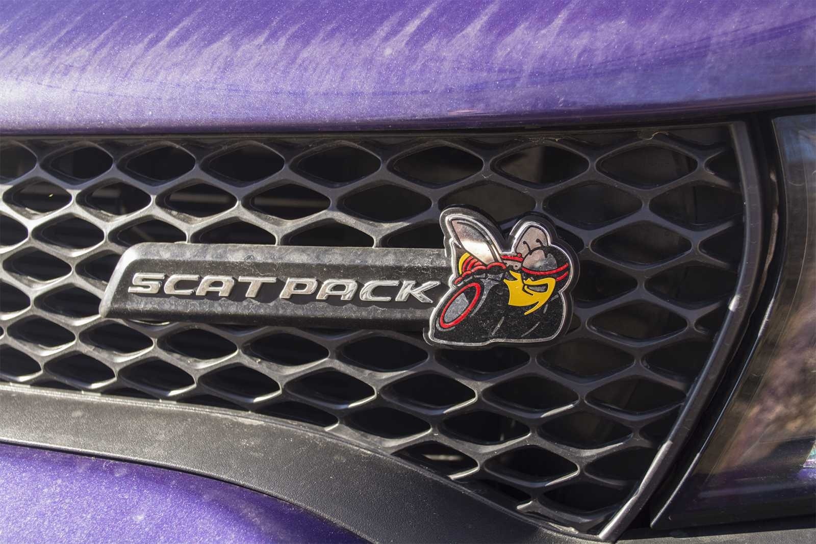 2016 Dodge Charger R/T Scat Pack Grille Badge Closeup with Bee Logo, Plum Crazy Purple