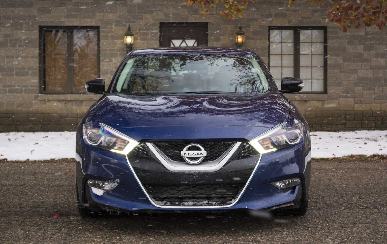 2016 Nissan Maxima SR Front View with V-Motion Grille in Snow