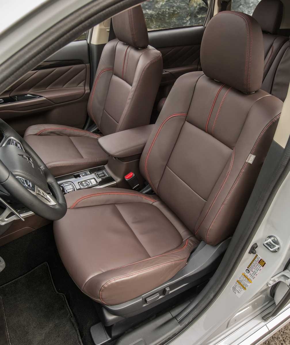 2017 Mitsubishi Outlander PHEV New York Auto Show Front Seats Brown Leather Red Stitching