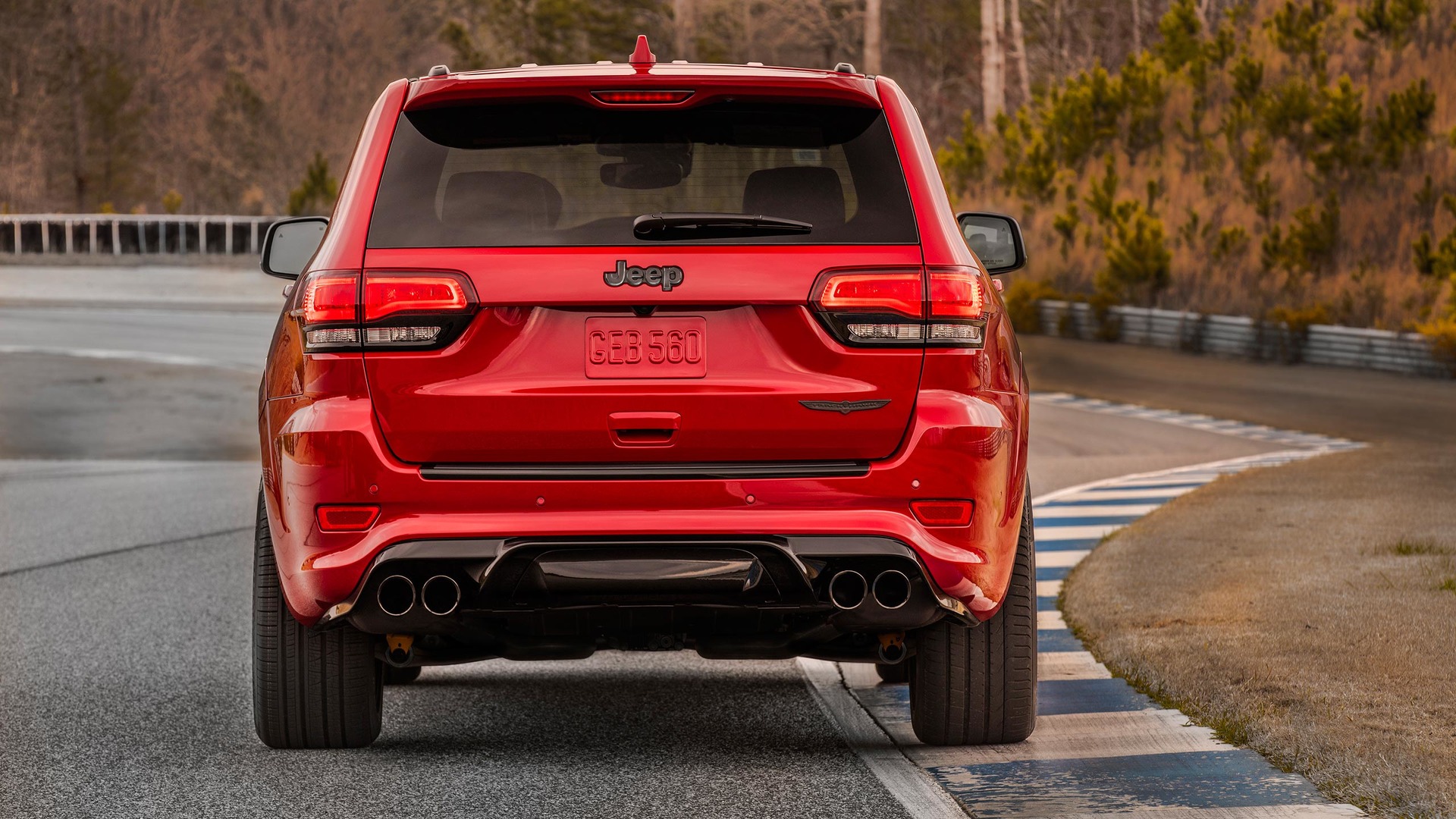 2018 Jeep Grand Cherokee Trackhawk Red Rear View Quad Exhaust on Race Track