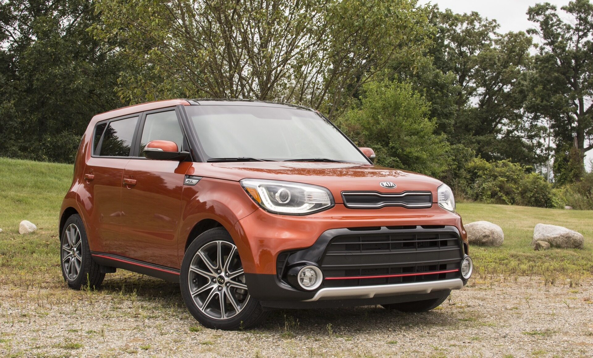 2017 Kia Soul Exclaim Front Three-Quarter View in Copper Orange