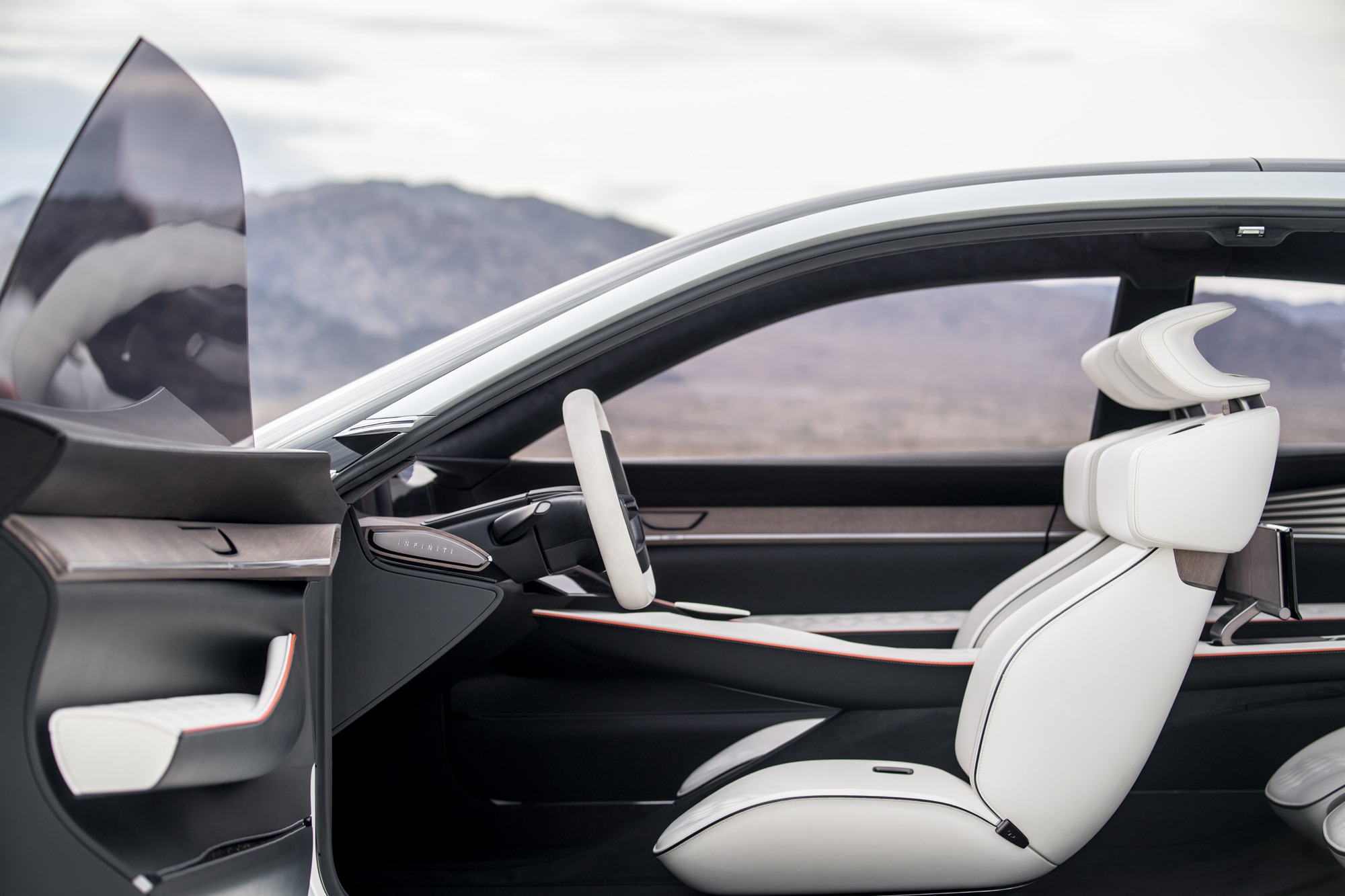 Infiniti Q Inspiration Concept, retractable steering column and front seat interior