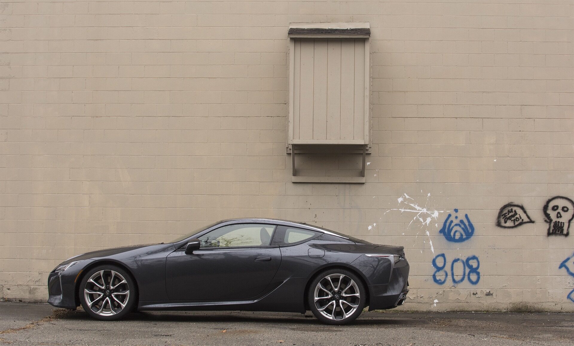 2018 Lexus LC 500 parked beside urban wall