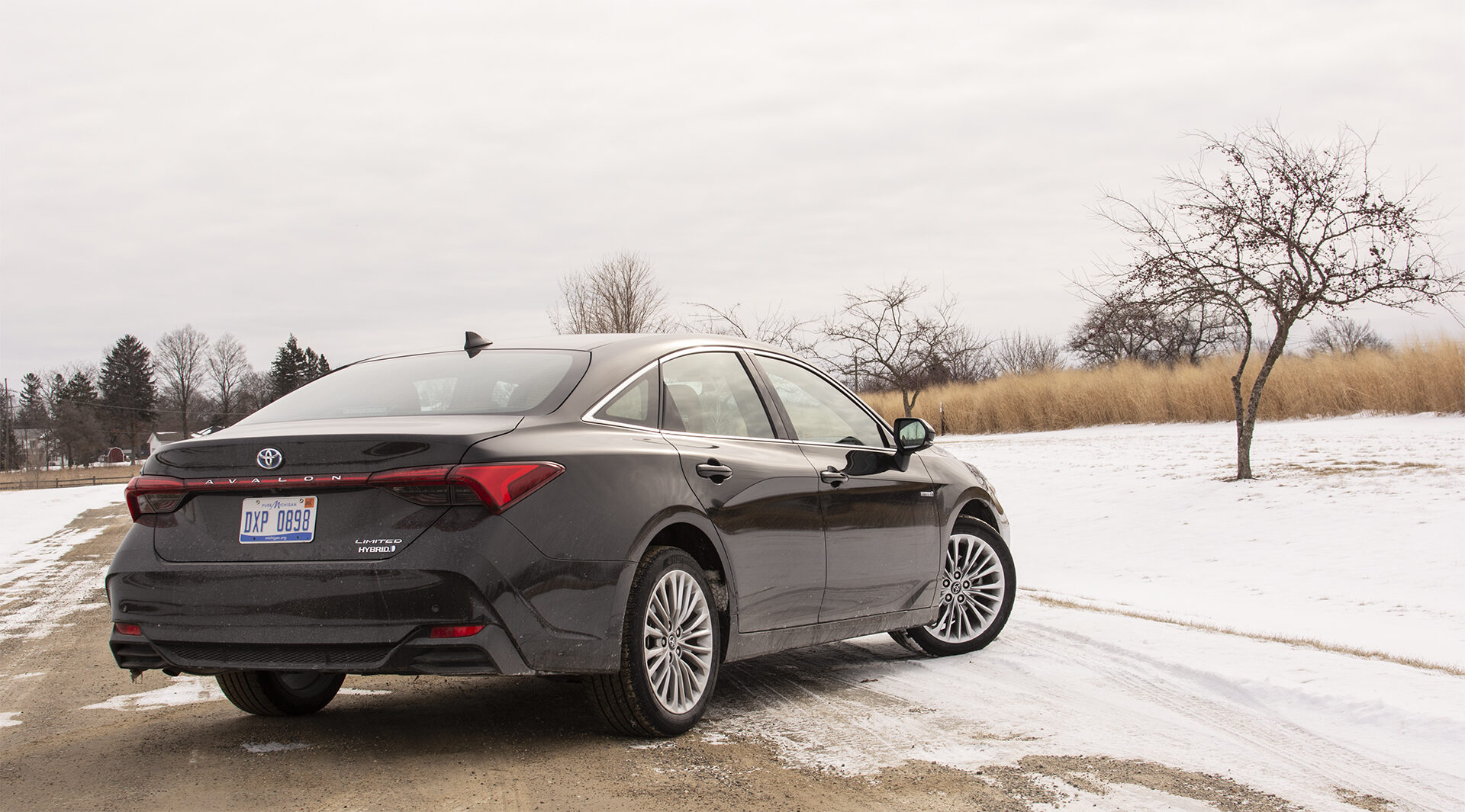 2019 Toyota Avalon Hybrid Limited rear three-quarter view in winter