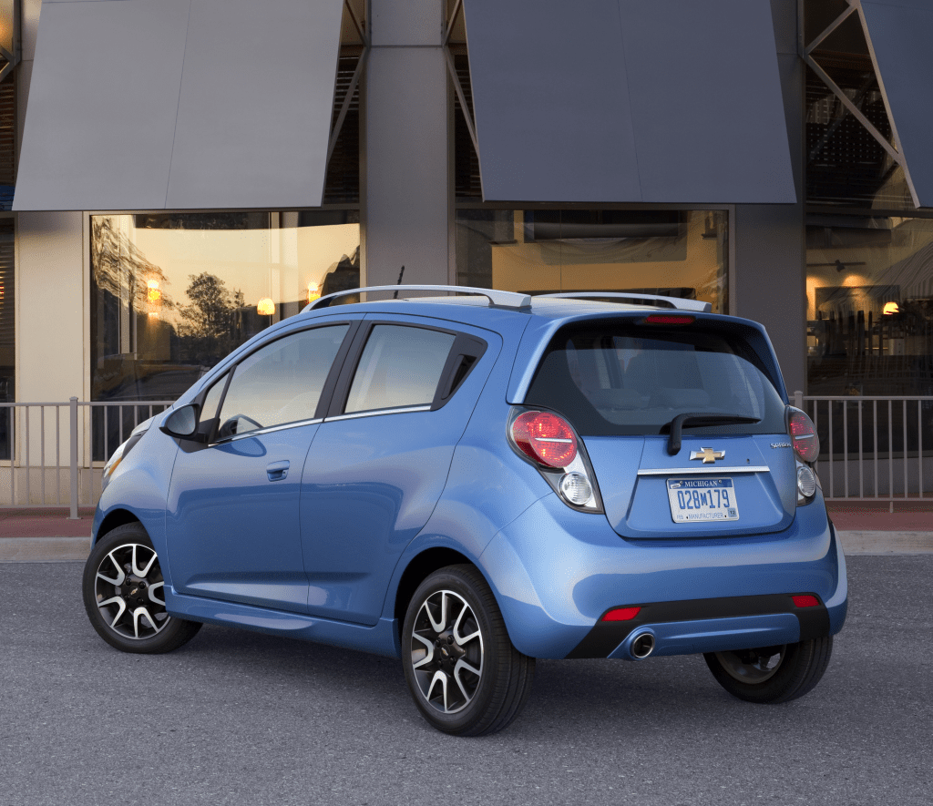 2013 Chevrolet Spark rear three-quarter view in blue