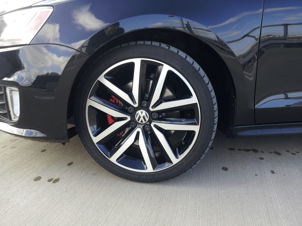 2012 Volkswagen Jetta GLI multi-spoke alloy wheel with red brake caliper