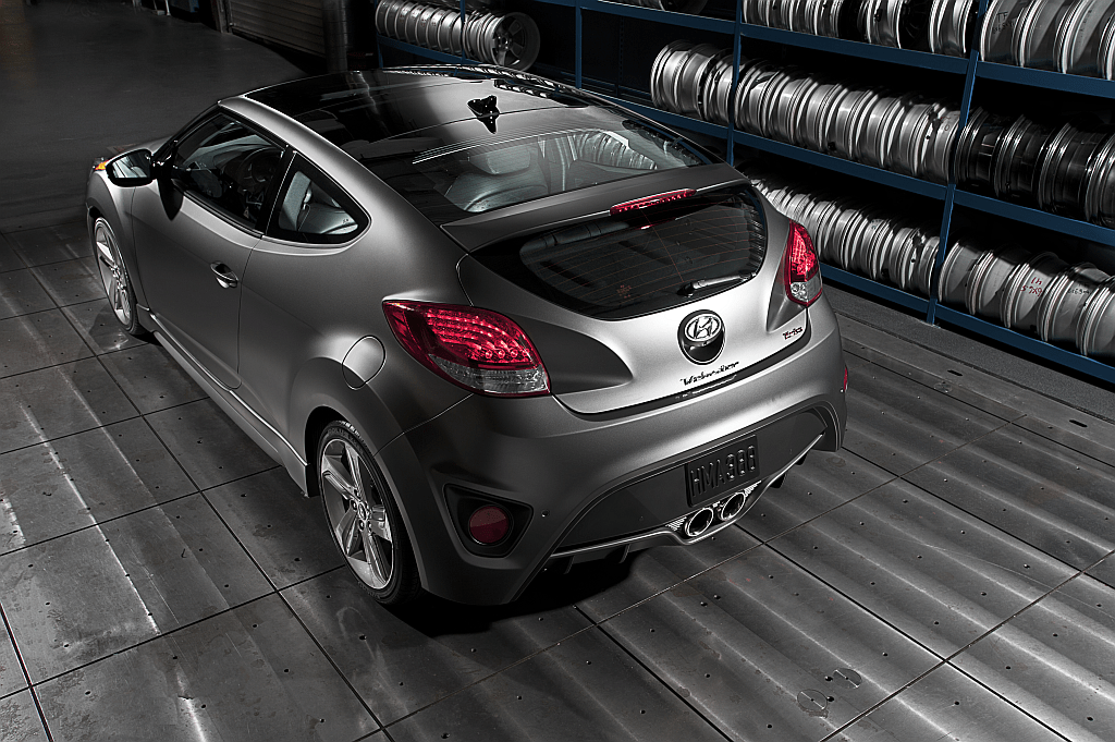 2013 Hyundai Veloster Turbo Rear Three-Quarter Studio Elevated View