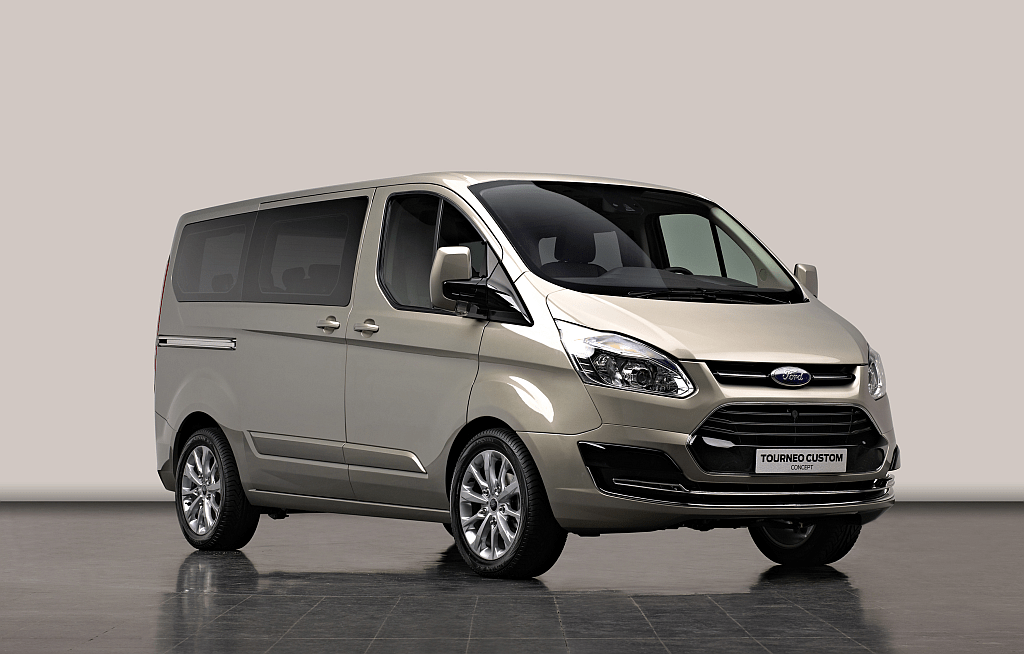 Ford Tourneo Custom Concept Front Three-Quarter Studio View in Gold