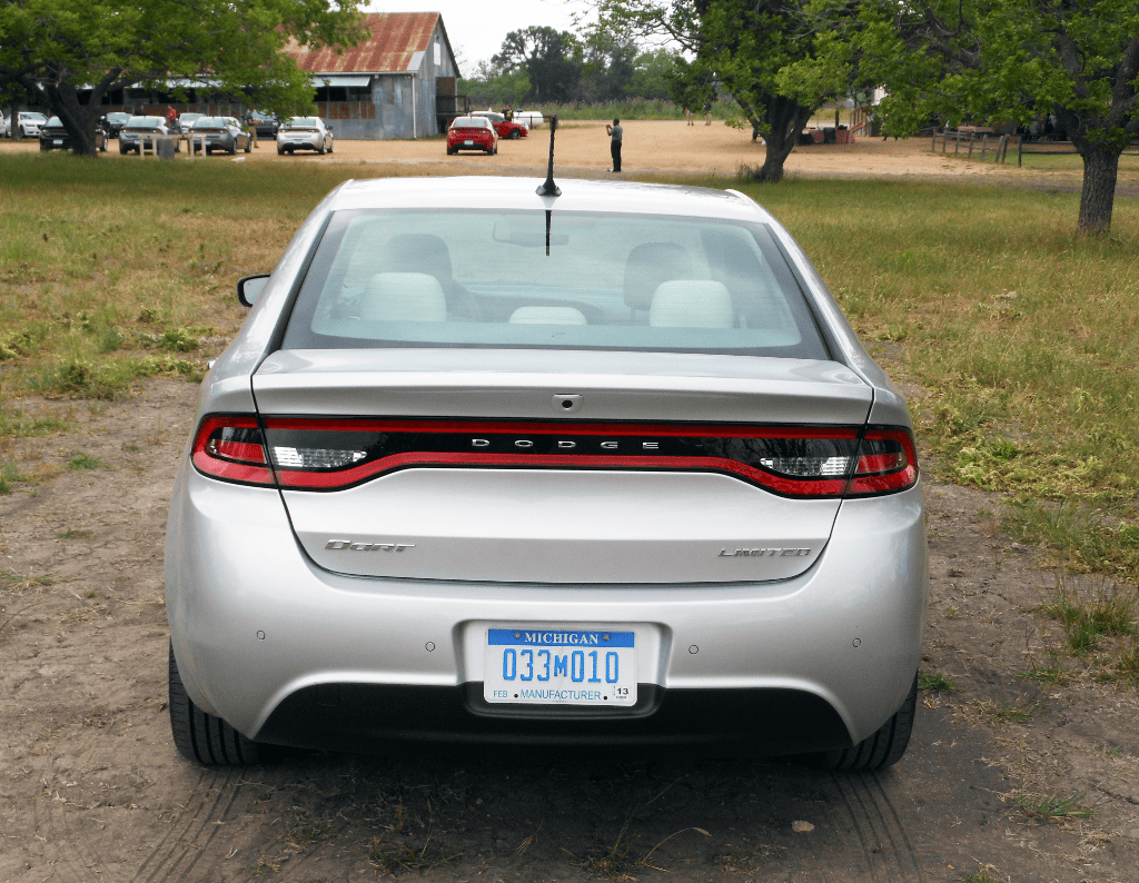 2013 Dodge Dart Limited Rear View — Silver, Full-Width Taillamp Bar