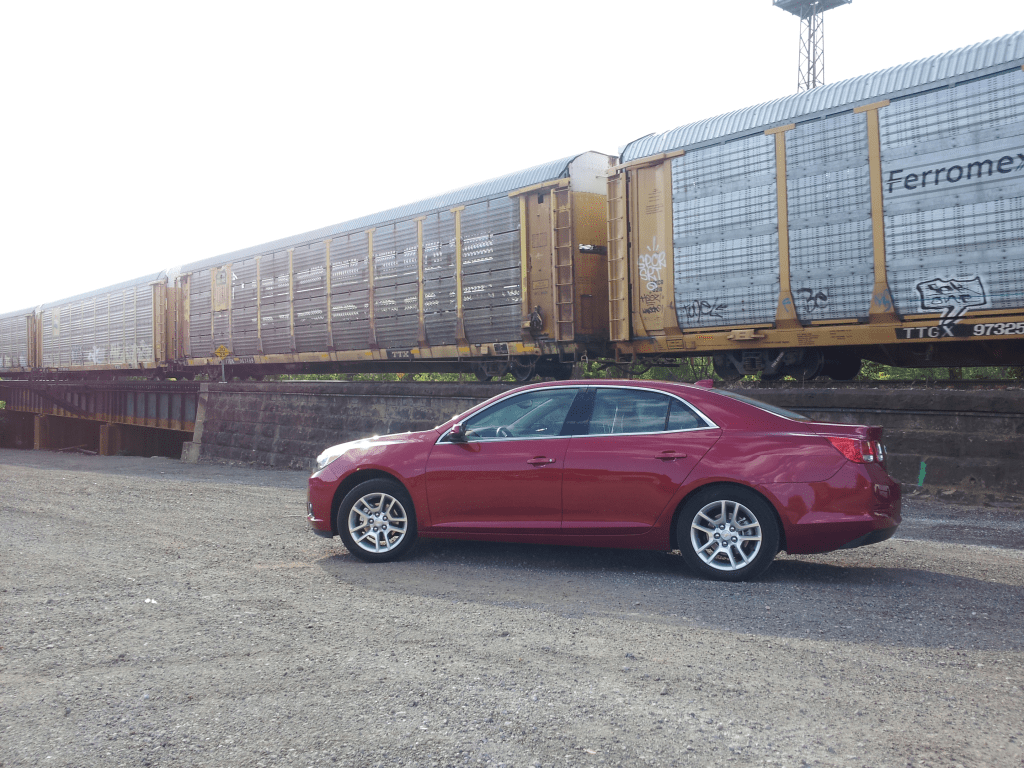 2013 Chevrolet Malibu Eco Side View Industrial Backdrop Freight Train
