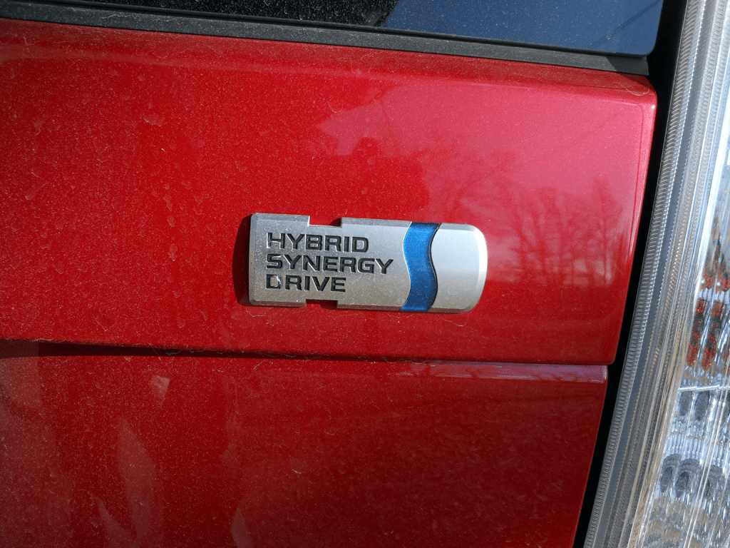 The "Hybrid Synergy Drive" badge on the rear quarter panel of the 2012 Toyota Prius Four is a quiet but proud declaration of the technology within. The signature blue stripe on the emblem has become synonymous with Toyota's hybrid lineup.