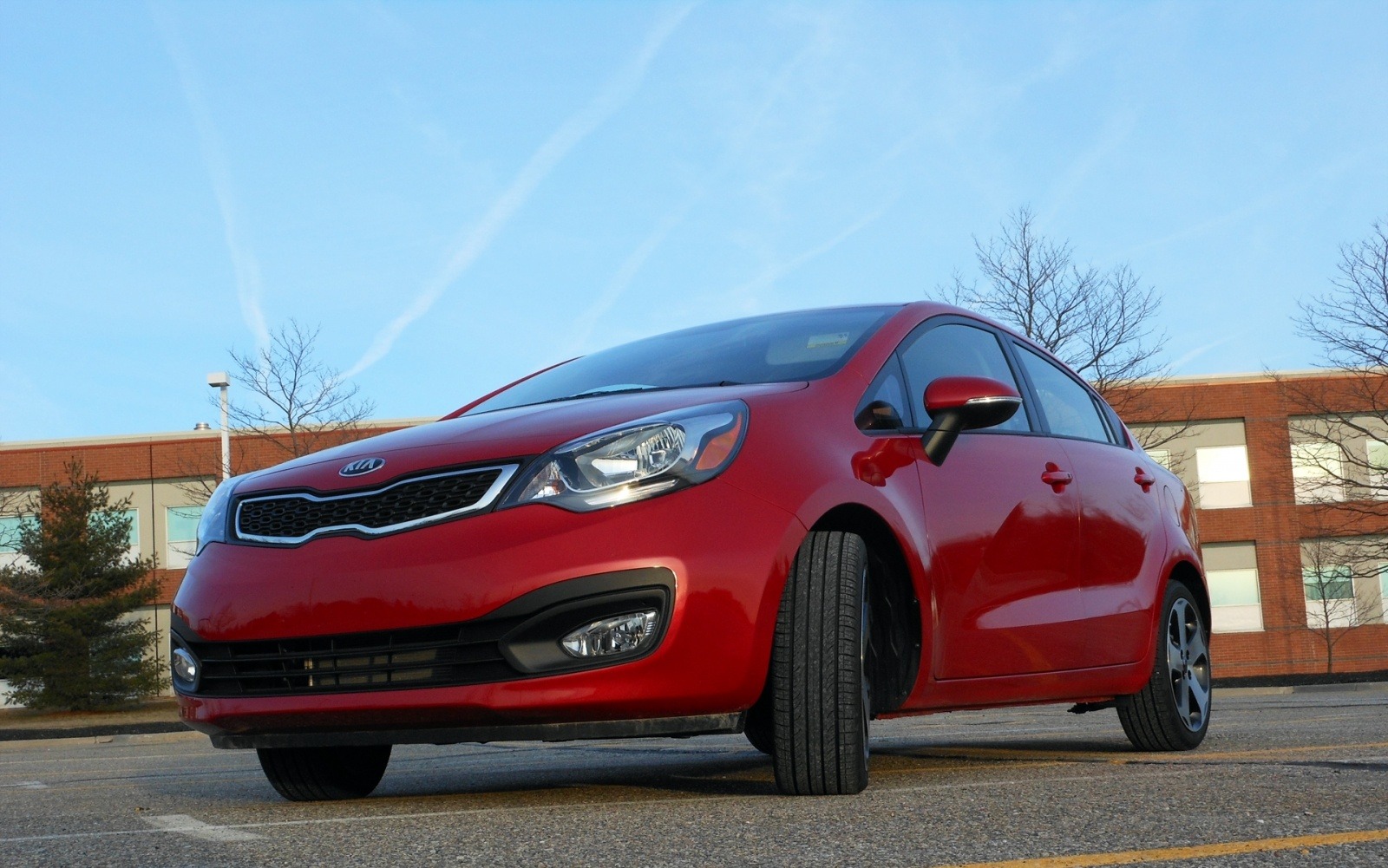 2013 Kia Rio SX Sedan — Low-Angle Front Three-Quarter View