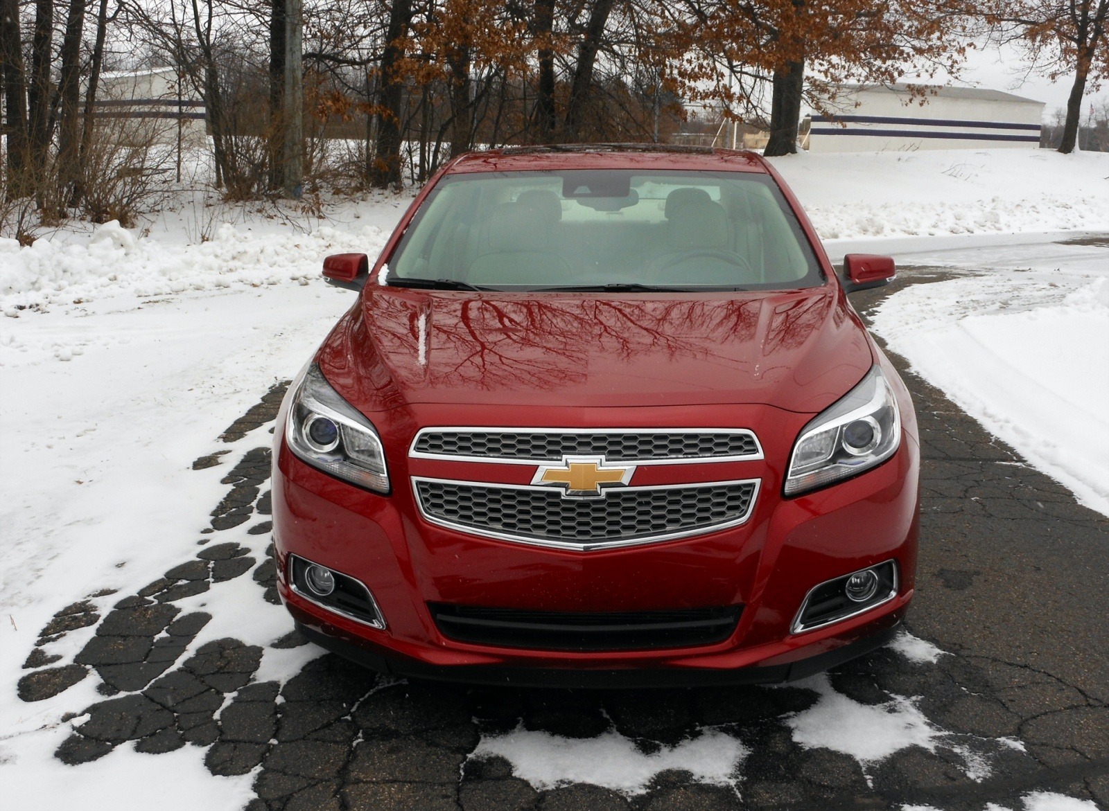 2013 Chevrolet Malibu Turbo front grille and headlights in snow
