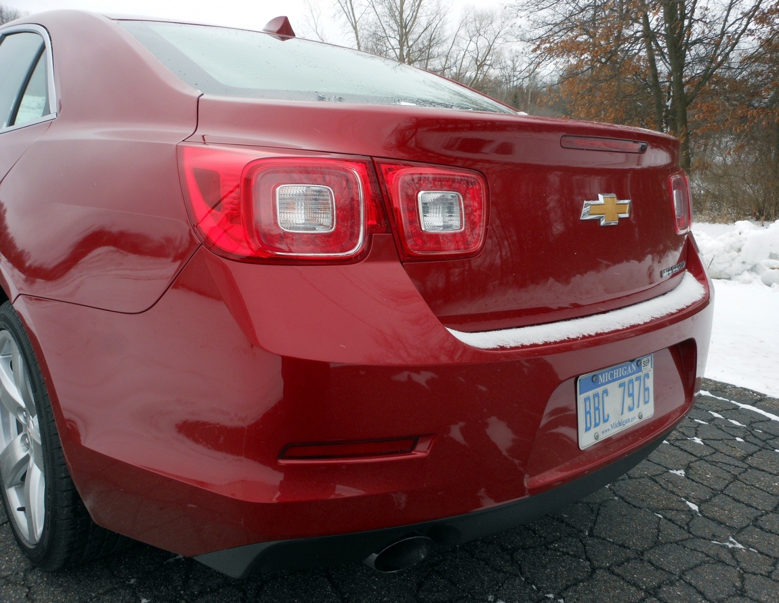 2013 Chevrolet Malibu Turbo passenger-side rear view in winter