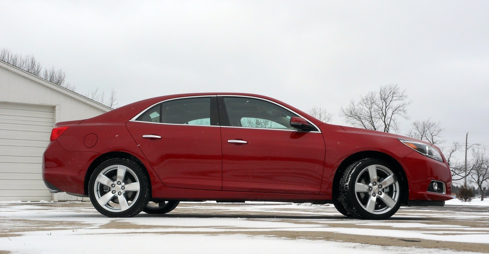 2013 Chevrolet Malibu Turbo passenger-side profile in winter
