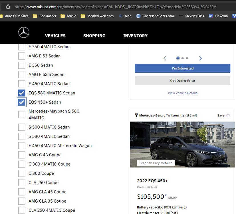 @ccap41 I did not think to check Autotrader for the EQB. One would think Mercedes if really vested in the EVs would have their website current with models and inventory. The EQB is as ugly as the rest of the family. Interesting is why does the local Mercedes dealership website not show this model or inventory but Autotrader does for the EV. That I find very interesting and telling of Mercedes upper management and lack of commitment to their EVs when the company website and dealership websites do not show it as an available model.