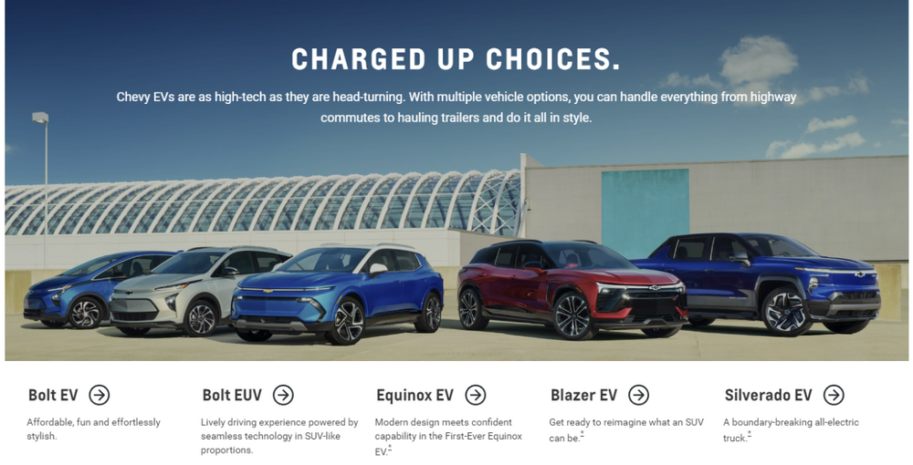 Seems Chevrolet is ramping up the marketing of their EVs. An Electrifying Future For Everyone | Chevrolet Family Photo of the current products coming out by 2023. Reese Witherspoon is the new Voice of Buick! An Electrifying Future Ahead | Discover Buick Check out the cool info on current ICE auto's and their EVs to come.