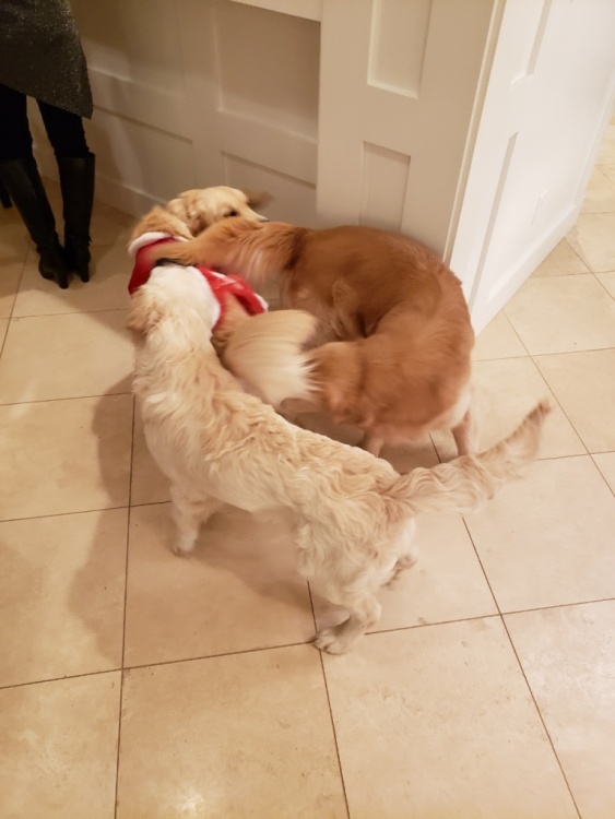 Thank you, yup, no need to be at anyone's wedding, I guess. LOL Party was good, at the Golden Breeders second home on Camano Island up north in the San Juan Islands area. Here are some pics. FYI, there were 10 humans and 13 goldens. LOL As the evening wore on, everyone got pretty comfy. Mark and His wife who are the dog breeders and home owner changed cloths as Mark broke out his latest batches of Whisky that he makes for Tast testing. Overall ended up being a good night. Dogs were having a blast playing. Seems my Cadillac dealership is doing a major remodel to the 21st century from the existing 1960's building it was.