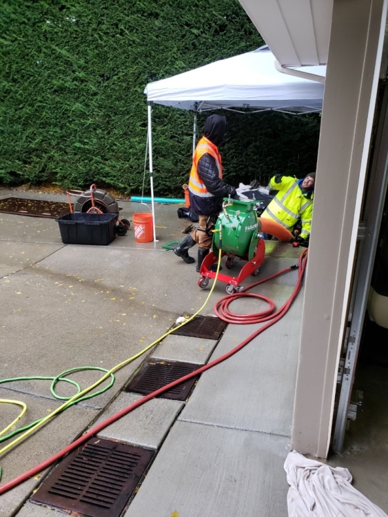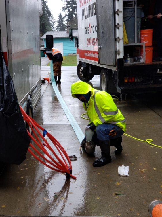 Status on the Felt Household. My 62 year old sewer line finally failed and so had to have them replace a section of the line and then 52 feet of liner from the cleanout in the garage to where it connects to the cities 6" line. Then the liner went in: Then the repair section was installed. Now awaiting inspection this Wednesday between 9-11am and they will then fill it up. You can see my bigger natural gas line and the water line.