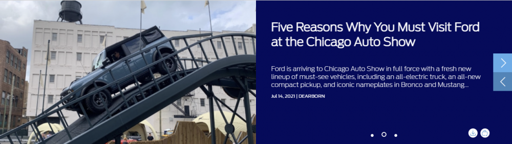 Seems Ford is really working to get people to attend the Chicago Auto Show. They have a major press release as to the reasons to attend. They also are working with a company to build a real world version of the F150 Rocket League truck. FORD Lists 5 reasons to attend the auto show this year. Five Reasons Why You Must Visit Ford at the Chicago Auto Show | Ford Media Center I am sure people will love the Bronco Obstacle course.