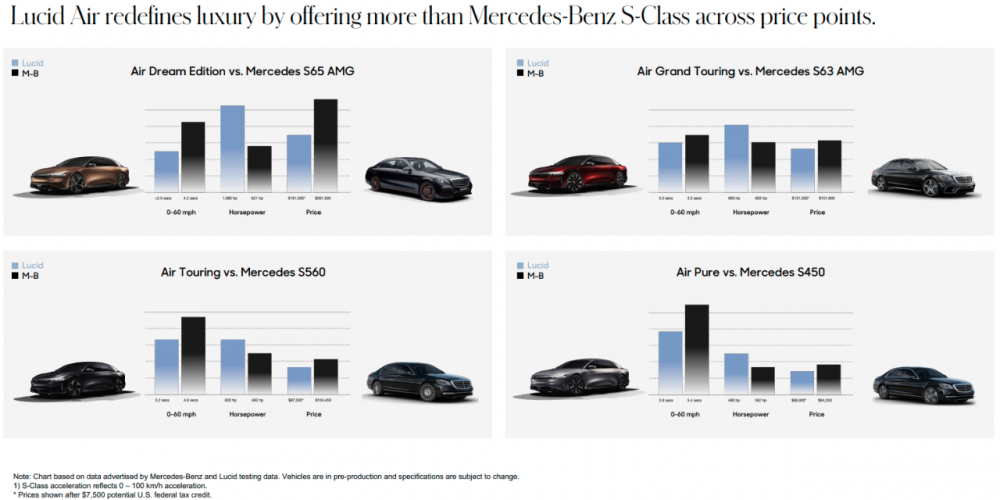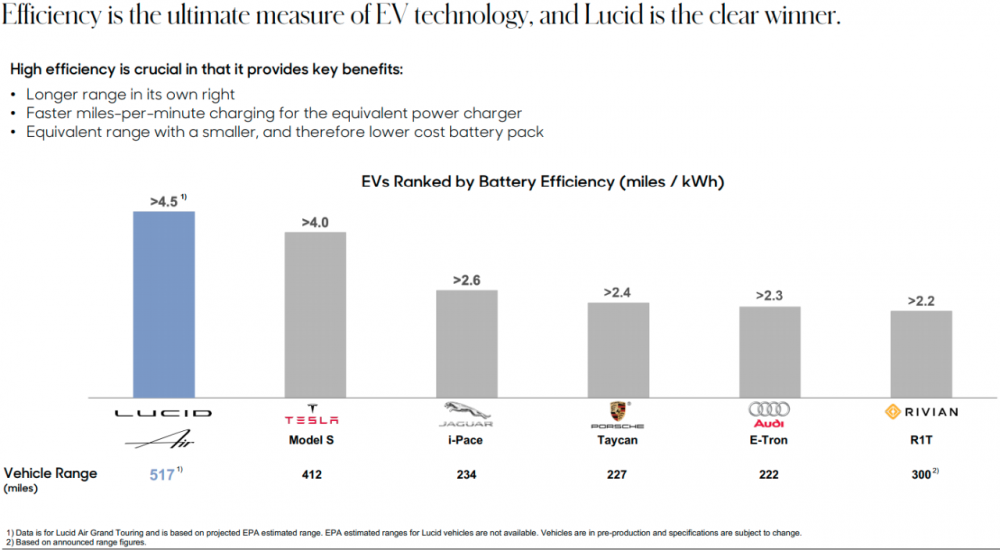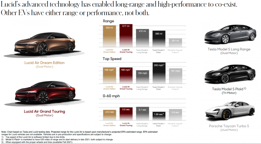 BMW CEO says the double digit growth of Tesla is at an end and cannot continue as mainstream auto companies enter the EV market. BMW CEO Expresses Doubts For Tesla's Further Growth Rate (insideevs.com) Lucid Investor Deck has comparisons to everyone else and it is rather interesting. Full deck with explanations here: lucid-investor-deck-february-2021.pdf (lucidmotors.com) Comparison deck: