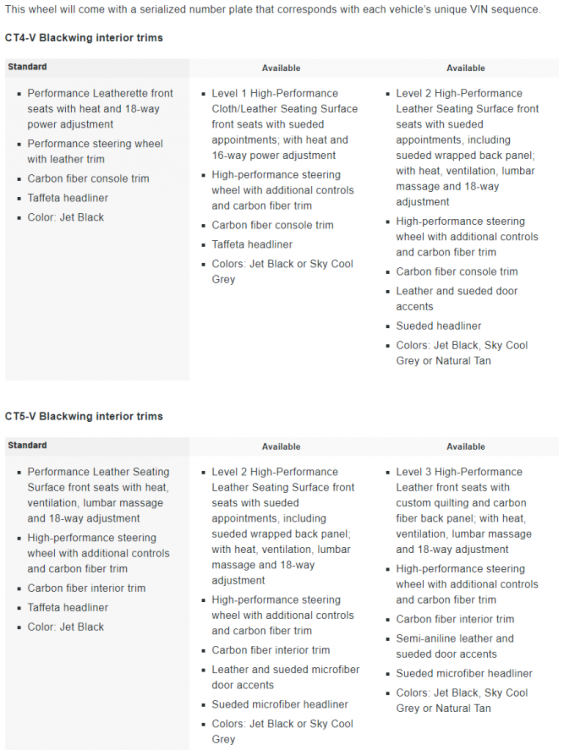 Where are you getting this mythical options list since they have not released anything other than saying the CT5-V Blackwing will start at $84,990 per the news release. It seems it will have few options not an ala-cart long list based on their new release. V-Series Blackwing: Ultimate Track Capability, Zero Compromise (gm.com) Based on this second news release this is the following only interior options that will be available. Just 2 option packages and that is it! V-Series Blackwing: Designed to Perform (gm.com) If ya do not believe me check out the full Cadillac News release page. News (gm.com)
