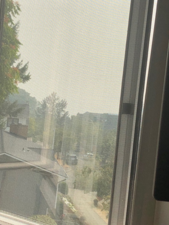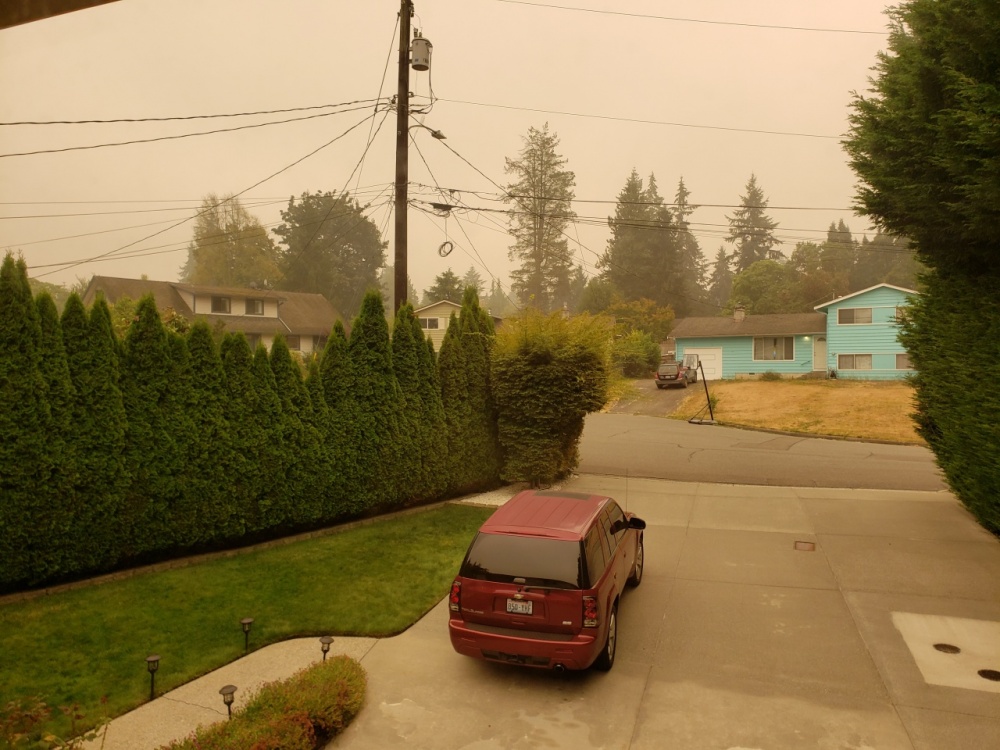 My coworker who lives in Seattle and has a view of the water from his office sent me the pic he took a month ago and today. Before wildfires Today with the smoke from Oregon and California moving in.