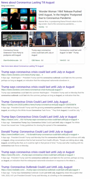 If potus45 is correct that this will last till August then man are people gonna be having huge cases of cabin fever.
