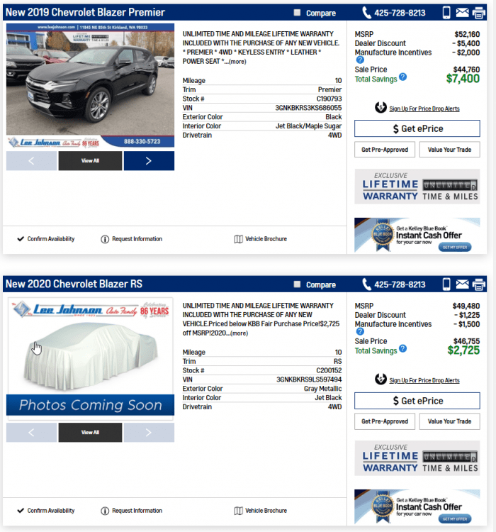 Honestly Hyundai can EAT GMs market share as GM is being Marketing Stupid in regards to proper prices and the 19 by me prove this. The funny part of the 19 in stock Blazers by me is they are all Premier or RS models. 2019 models get $7,400 off MSRP 2020 Models get $2,725 off MSRP Clearly GM has this product priced way too high