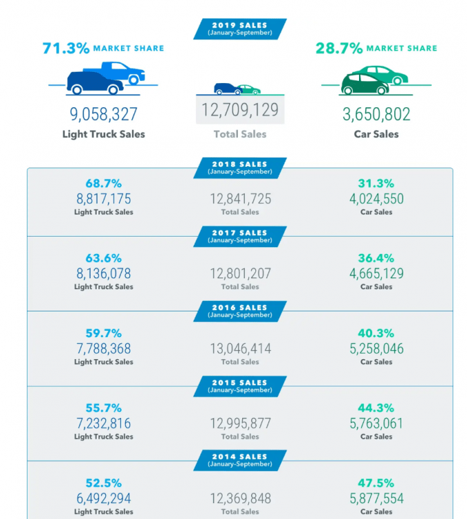 Interesting auto sales info for the last 5 and half years, clear picture of cars versus trucks/suv/cuv/vans: Full Report here: https://autoalliance.org/economy/light-trucks