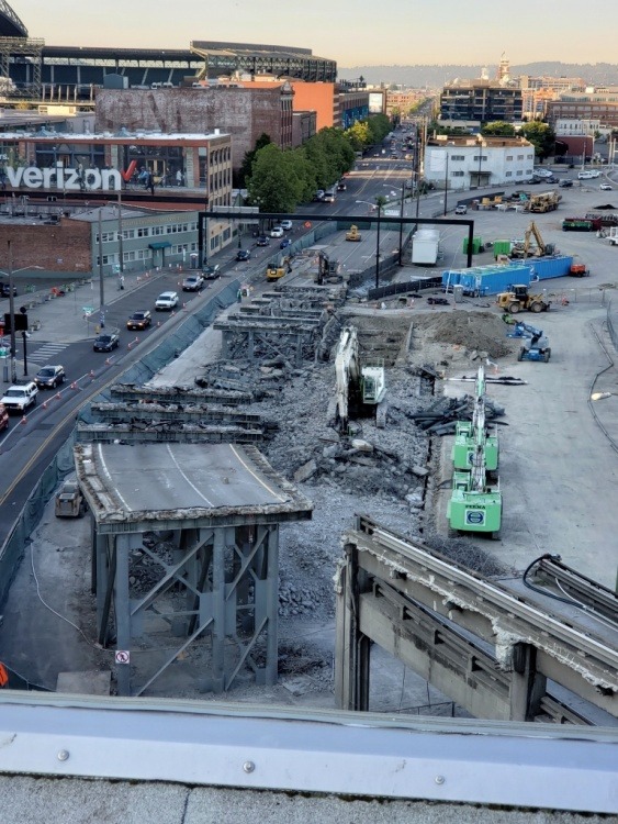 Grilled Ribeye Steak and Asparagus this weekend. YUMMMMMMMMMM Monday Morning at Work in Seattle Our Alaska way Viaduct is coming down now that the undercity tunnel is done and open. Morning Sun Rise over Puget Sound and the Olympic Mountains to the west.